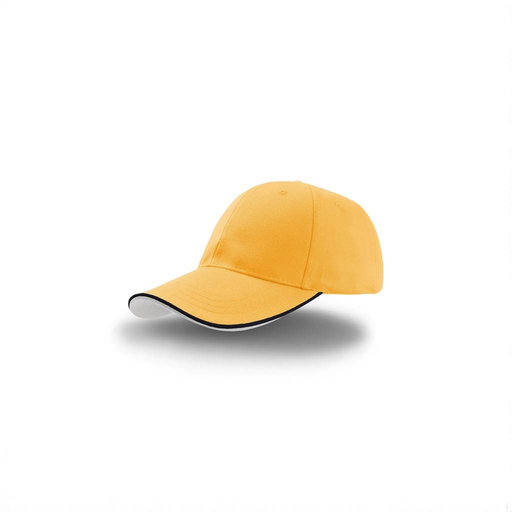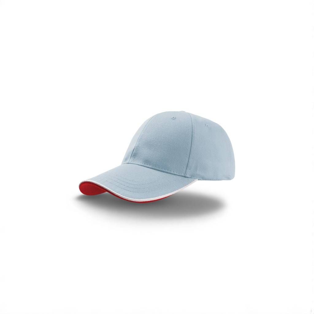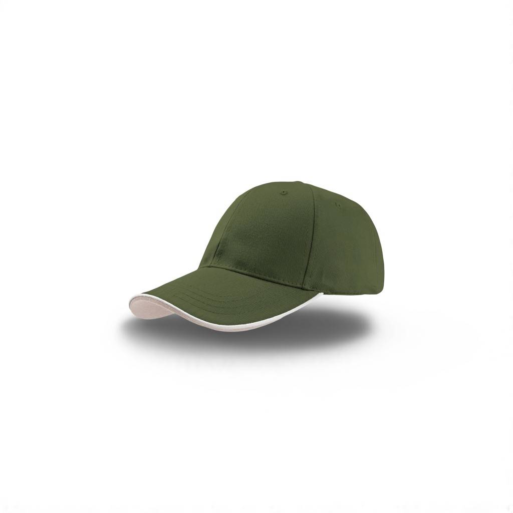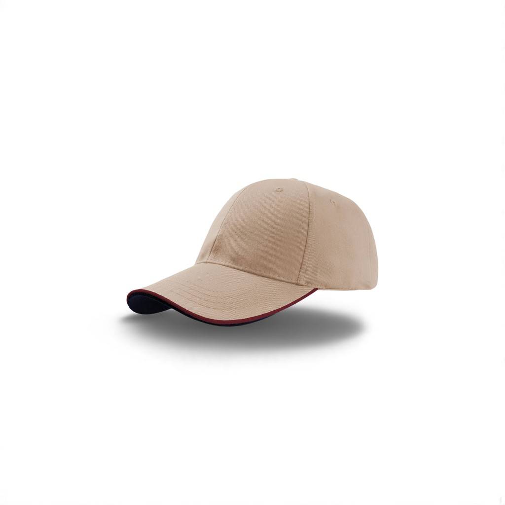 Schirmunterseite in Kontrastfarbe, Paspel in Kontrastfarbe an Schild und Verschluss, Frontsegment verstärkt, Klettverschluss,